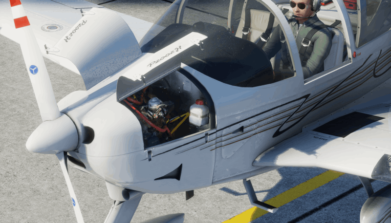 Openable engine doors as well as battery compartment for inspection. Oil level inspection with Rotax characteristic "burp" procedure.