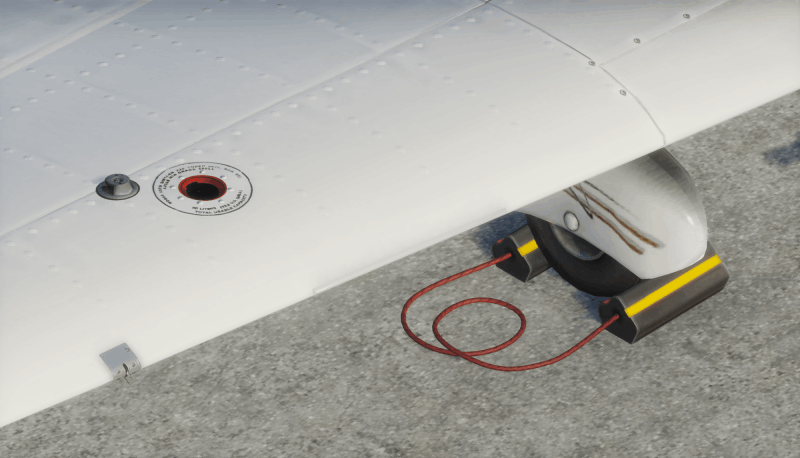 You can perform a fairly complete walk around: openable fuel caps, spillable fuel test, remove-before-flight covers, chocks, ropes etc.