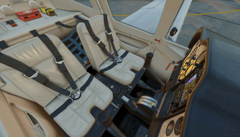 A reproduction of a common load sheet is in the right cockpit pocket for educational purpose. It change depending from Weight & Balance settings.